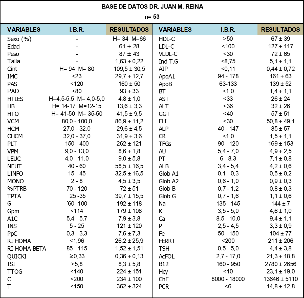 En esta sección voy a ir publicando los resultados que obtenga empleando mi base de datos personal de pacientes españoles asintomáticos de diabetes que confeccioné durante la investigación que me llevó al doctorado, que está bien conformada y es extensa en parámetros analíticos incluidos, para investigar el comportamiento estadístico de los marcadores, índices y cocientes precoces de valoración de RCV propuestos en distintas publicaciones, para lo que emplearé el programa estadísitico Statgraphics Centurion XVI.